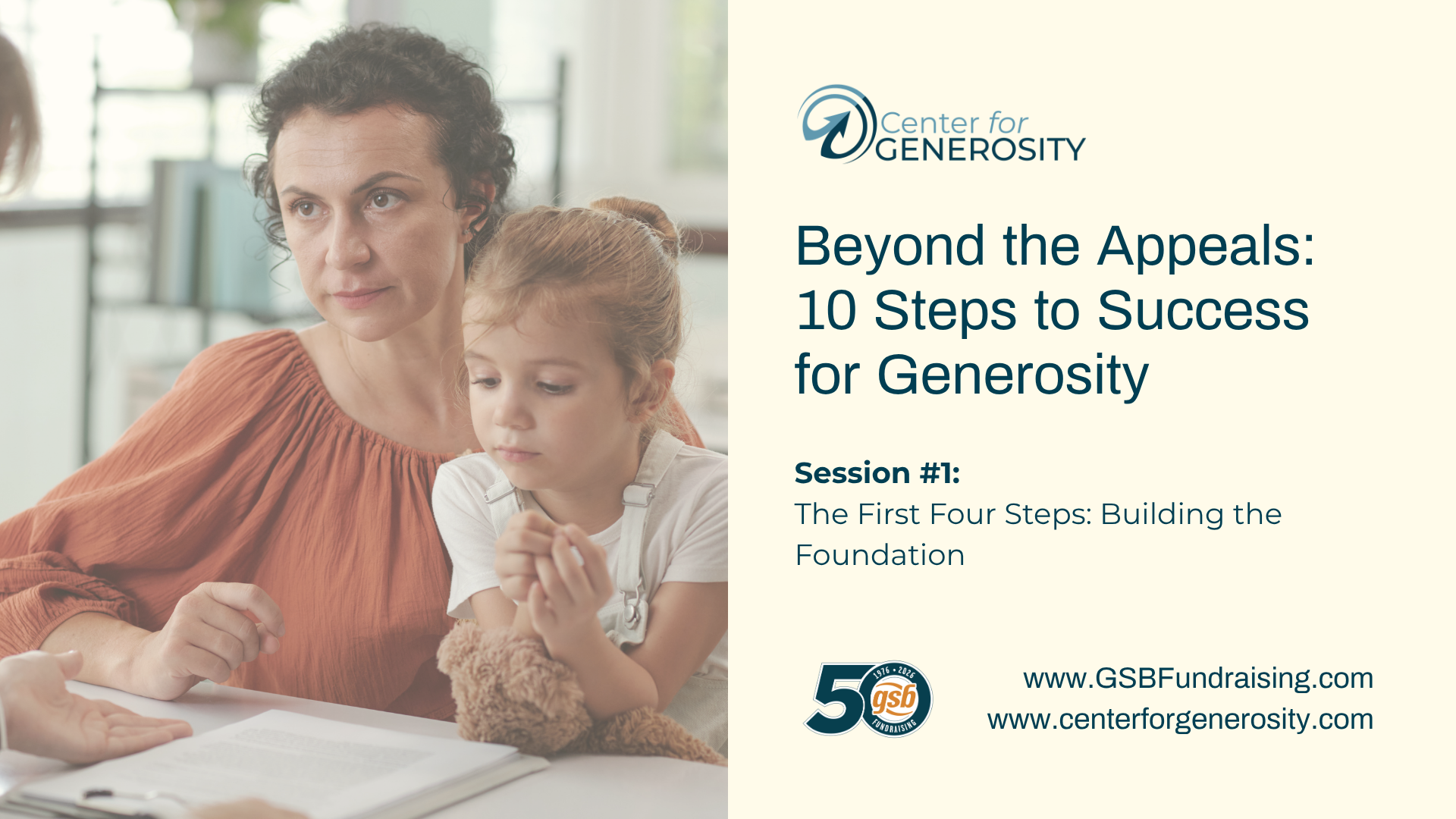 Beyond the Appeals: 10 Steps to Success for Generosity. Session #1: The First Four Steps: Building the Foundation