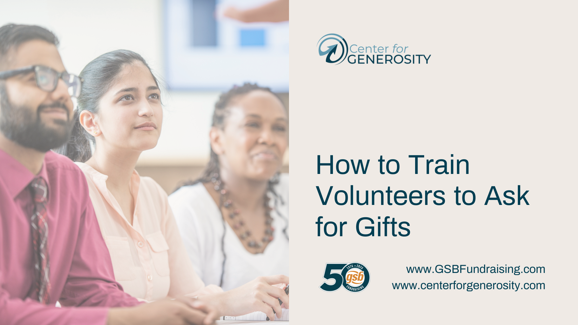 Back to All Events How to Train Volunteers to Ask for Gifts Monday, April 27, 2026 3:00 PM 4:00 PM Google Calendar ICS Volunteers can be a wonderful resource as you ask for gifts. In this roundtable we will discuss the importance of proper training and what to include in that training so that your volunteers have the best chance for success. Zoom Link To Join