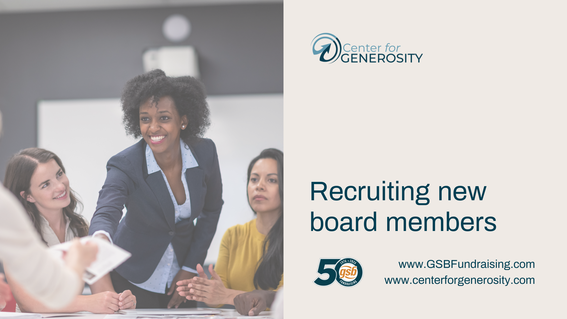 Recruiting new board members Monday, April 13, 2026 3:00 PM 4:00 PM Google Calendar ICS Today it is harder to land new leadership volunteers than it is to land a major gift. In this roundtable we will provide the keys to recruiting the right people for your nonprofit’s board of directors. Zoom Link To Join